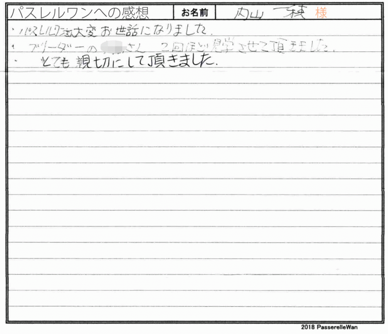 群馬県より東京都犬舎までご見学へお越し頂きました。 当初はご縁があっても改めてお迎え予定でございましたが、バッシュ君との運命の出会いに、当日ご一緒に群馬県へお連れ頂くことに^^ 長年フレンチブルドッグを飼っておられます大のフレブル好きな愛好家様です☆ お写真の更新の件、貴重なご意見誠にありがとうございます。しっかい今後の運営に反映していけますよう努めます! 素敵な暖かいご家族様にバッシュ君をお迎え頂けて当方ブリーダーさん共に心より嬉しく思います。 どうぞ、素敵なフレンチブルドッグライフをお送りください・・・☆★☆ この度は当店をご利用いただき誠にありがとうございます。
