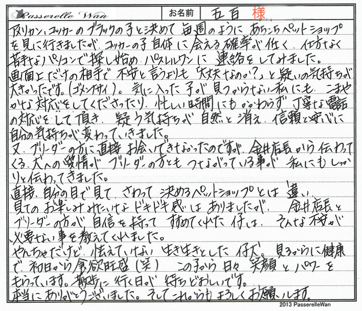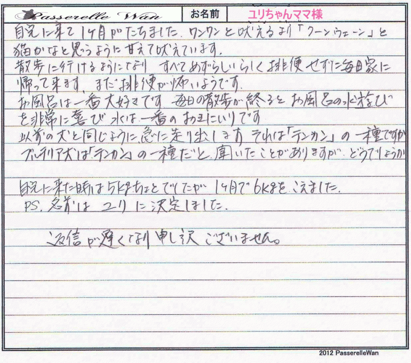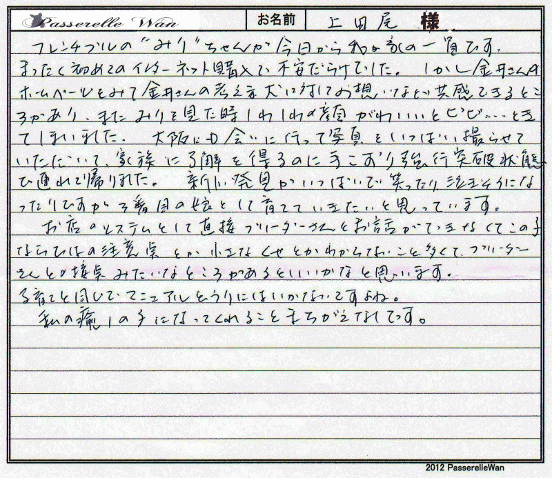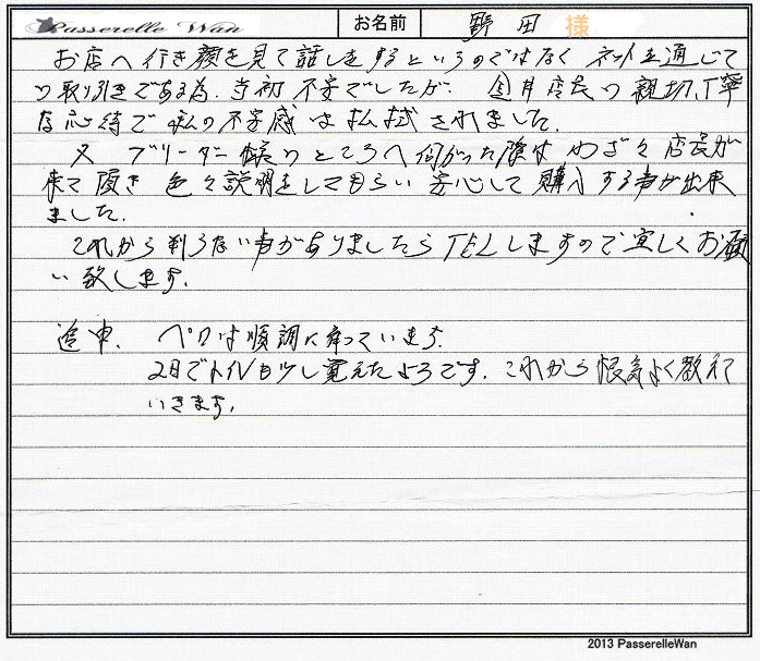■店長コメント 大阪府のT様 、 お名前:ユリちゃん