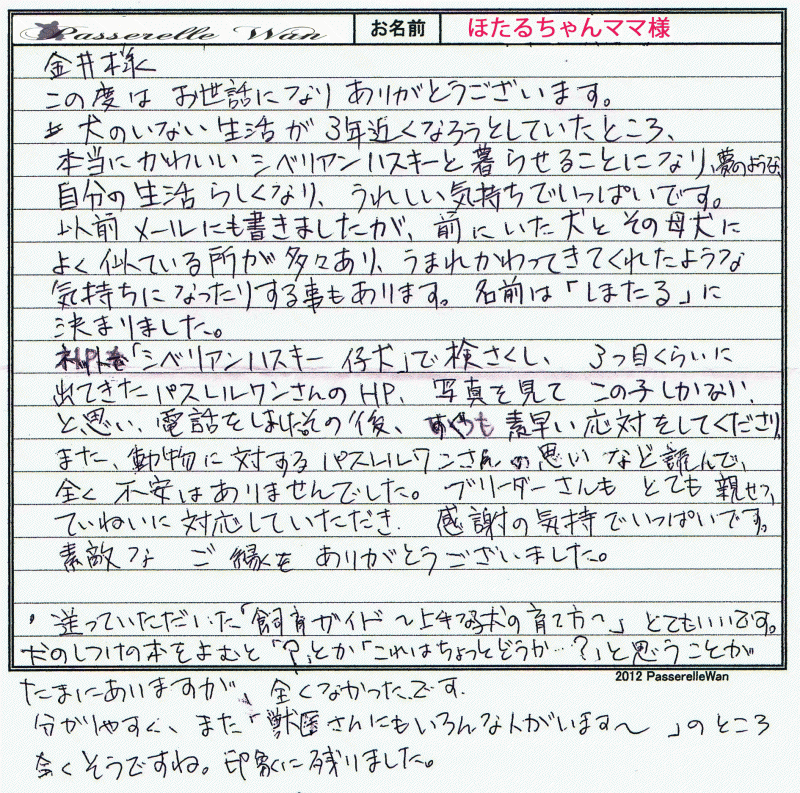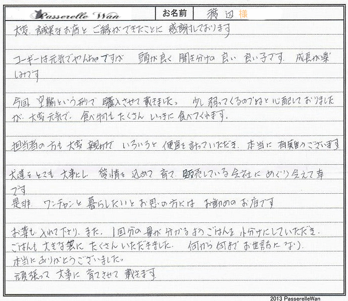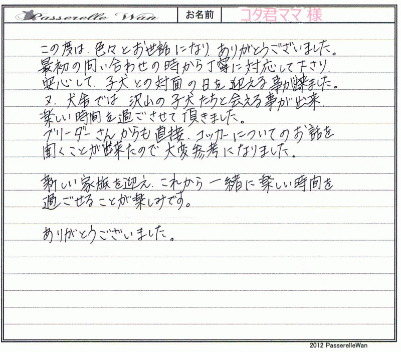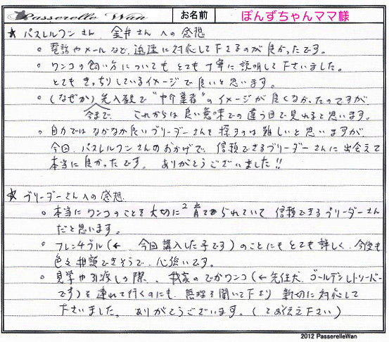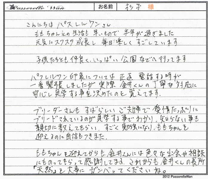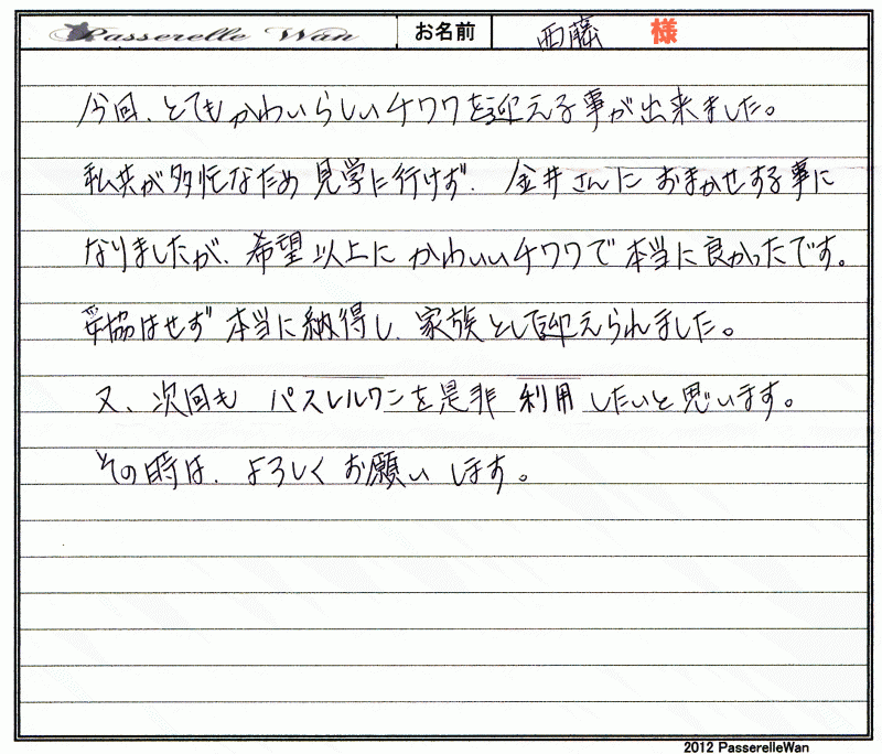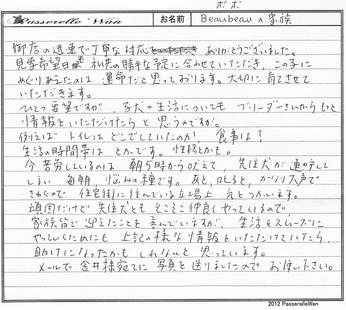 レッド色に近いユリちゃんに一目惚れでした^^お仕事がご多忙の中御見学にもお越しいただきました。 |