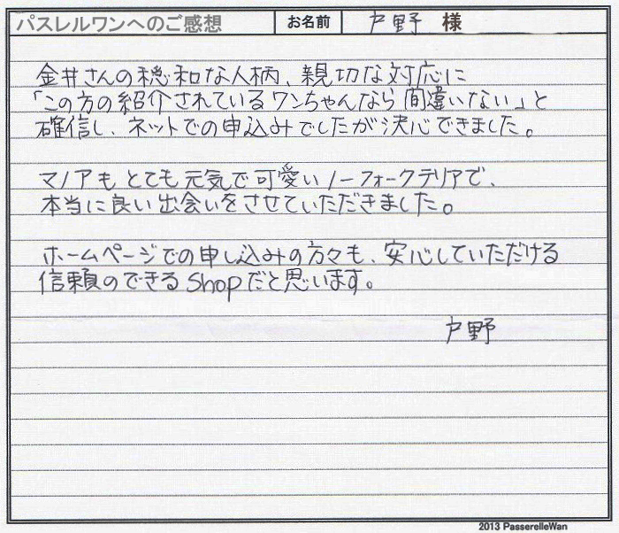 ※お客様からのご感想は、クリックすることで拡大して表示されます。